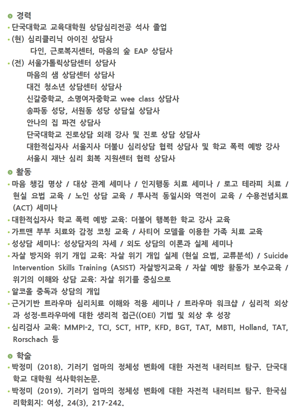- 한국가톨릭상담심리학회 상담심리사 1급